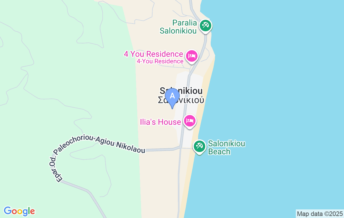 Plaža je udaljena oko 220m, dok je uređeni deo sa lezaljkama i suncobranima udaljen oko 600m. Od sela Agios Nikolaos i prve veće prodavnice i taverni je udaljen oko 9km, ali svako jutro pored smeštaja prolazi kombi sa svežim hlebom i pecivom iz pekare. Selo Metagici je udaljeno 4km, a ribarsko naselje Pirgadikija gde gosti mogu da probaju tradicionalne specijalitete i svežu ribu je udaljeno 6km.
