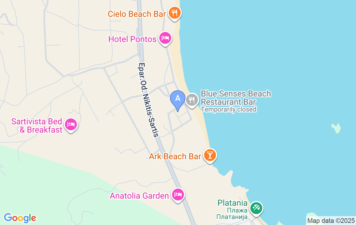 Ukoliko želite da svoj odmor provedete u pristojno opremljenom smeštaju, nadomak peščane plaže u Sartiju, vila Pirofani može biti dobar izbor za vas. Budući da se nalazi u delu Sartija gde je plaža najlepša i sa dugim plićakom, ovaj smeštaj ima jedan od najboljih odnosa cene i kvaliteta.