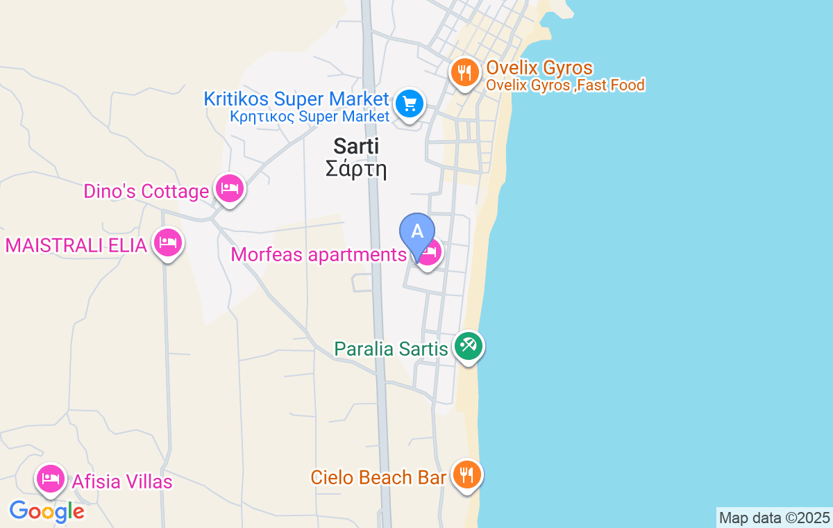 Višespratna kuća koja se nalazi u Sartiju, u jednom od najpopularnijih letovališta u istočnom delu Sitonije. Udaljena je 500m od centra mesta, a 130m od duge peščane plaže sa tirkiznim morem. U istoj kući u suterenu, nalazi se i privatna ordinacija za fizioterapiju, koja pruža i usluge različitih vrsta masaža tokom letovanja. Odličan izbor za sve koji žele da posete još neko mesto, obzirom da se nalazi nedaleko od Sikije, na udaljenosti od 11km.