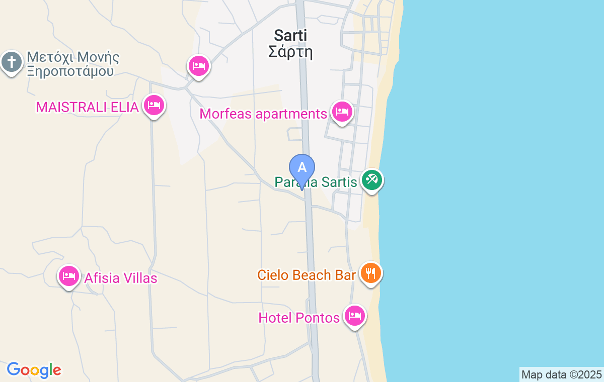 Vilu Doxa je lako naći jer se nalazi na magistrali u Sartiju. Iz pravca Vurvuru, nalazi se na desnoj strani, odmah posle hotela Vamvinis. Jasno je obeležena, pa je nemoguće promašiti.