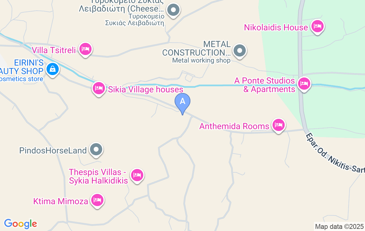 Sikia Family House je na udaljenosti od plaže Kalamitsi 8 km, od mesta Sarti 10 km, dok je od najbližeg aerodroma u Solunu udaljena 140 km.