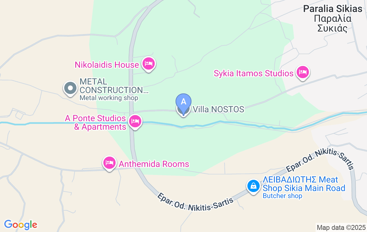 Nostos Villa se nalazi na svega 1,2km od najbliže plaže u Sikiji. Zahvaljujući toj lokaciji, gosti su u neposrednoj blizini mora, ali i dovoljno udaljeni od gužve, kako bi mogli da uživaju u miru, prirodi i tišini. Sama Sikija je jedno od najstarijih sela na Halkidikiju, sa karakterističnom makedonskom arhitekturom, starim kamenim kućama i crkvama iz 19. veka. Selo odiše autentičnim duhom i idealno je za šetnju uskim uličicama, otkrivanje lokalnih kafana i susret sa tradicijom. Za one goste koji više vole da putuju avionom, aerodrom Makedonija u Solunu je od vile Nostos udaljen 140km.