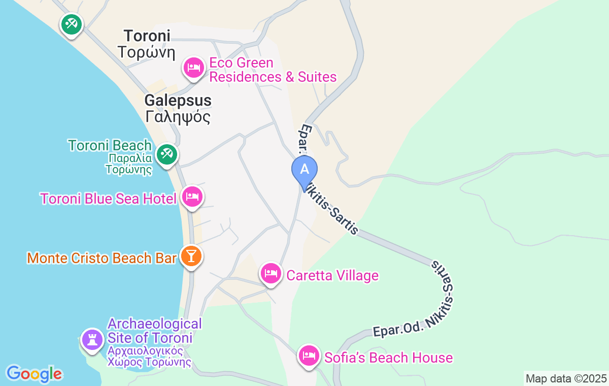 Do smeštaja ćete stići tako što ćete voziti magistralom. Kada prođete skretanje za plažu Destenika i još tri ulaza u Toroni iz pravca Neos Marmarasa, posle 700m ćete doći do smeštaja Hristos koji se nalazi sa desne strane.