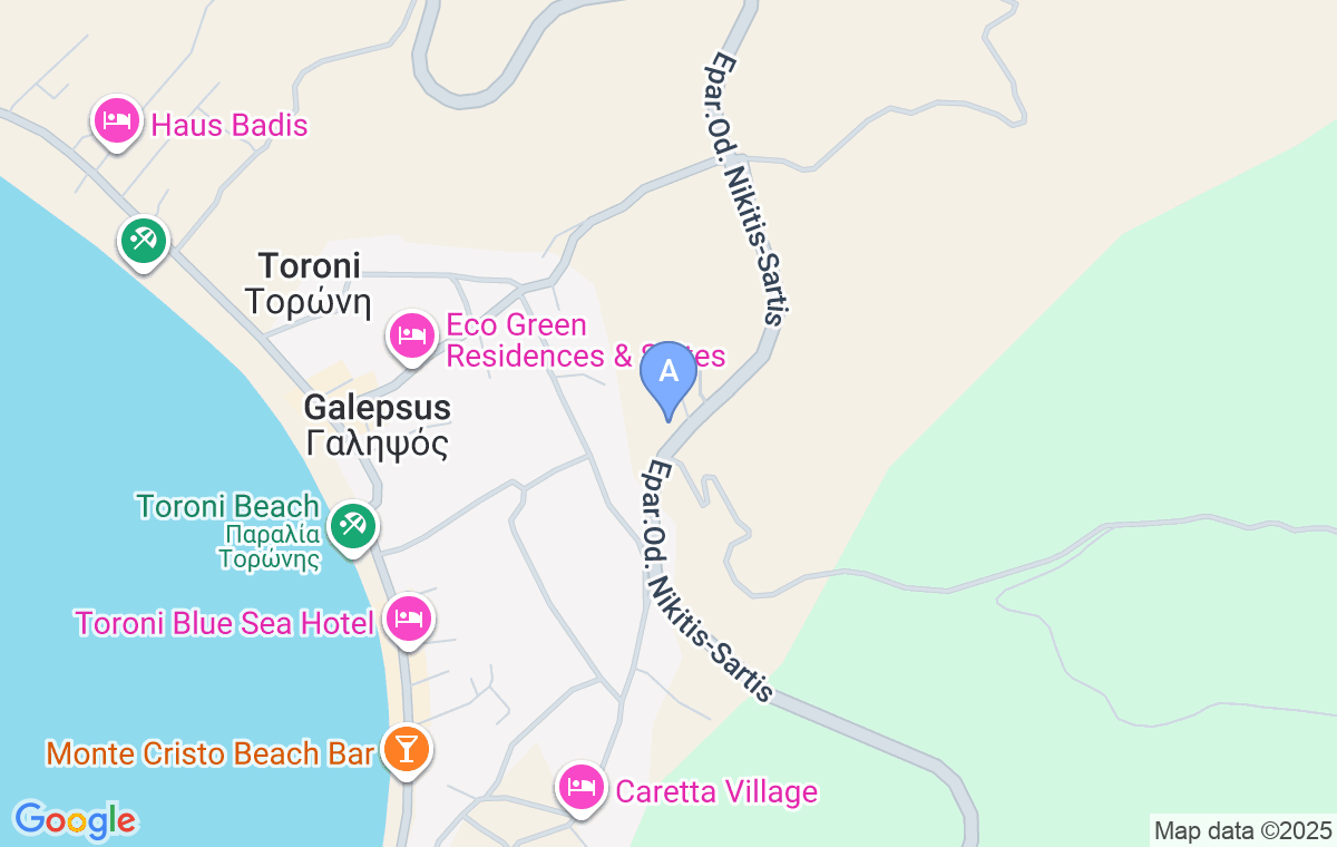 Ukoliko dolazite iz pravca Nikitija i Neos Marmarasa, smeštaj ćete ugledati sa desne strane ispod magistralnog puta na nešto više od 3km nakon što prođete prvo skretanje za ulazak u Toroni.