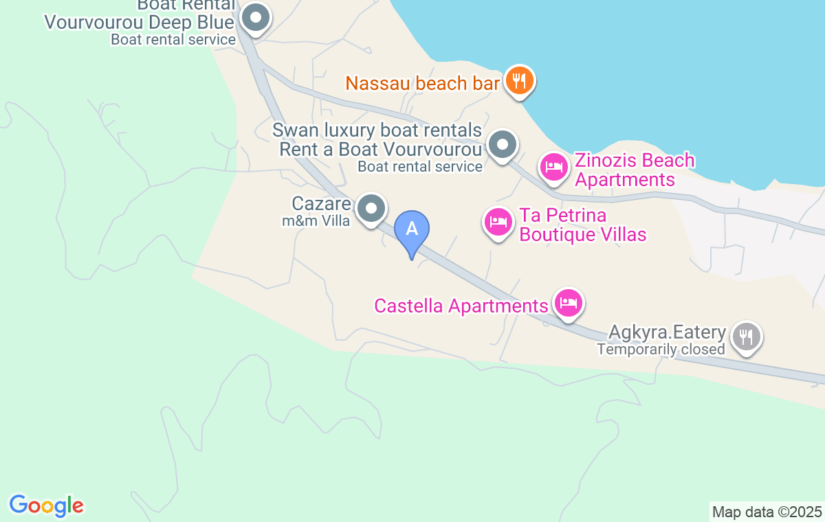 Preko puta smeštaja nalazi mini market sa pekarom, a u sklopu marketa je i kafić. Veći market, taverne, kao i plaža se nalaze na udaljenosti od oko 1500m.