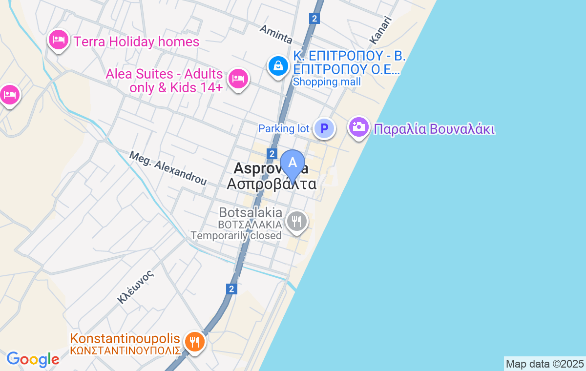 Evelin Villa se nalazi u mestu Asprovalta, jednom od najposećenijih letovališta severne Grčke, i predstavlja idealan izbor za goste koji žele spoj komfora, blizine plaže i sadržaja pogodnih kako za porodice tako i za parove ili grupe prijatelja. Smeštaj se nalazi na 110 metara od mora, u neposrednoj blizini svih važnih sadržaja, uključujući prodavnice, restorane, kafiće, pekare i poslastičarnice. Na 20 metara od objekta nalazi se dečije igralište, a gostima je na raspolaganju i uređeno dvorište sa fontanom i letnjikovcem koje doprinosi prijatnoj atmosferi. Blizina svih sadržaja, kao i ljubaznost domaćina i visoki standardi čistoće, čine ovu vilu odličnim izborom za odmor bez kompromisa.
