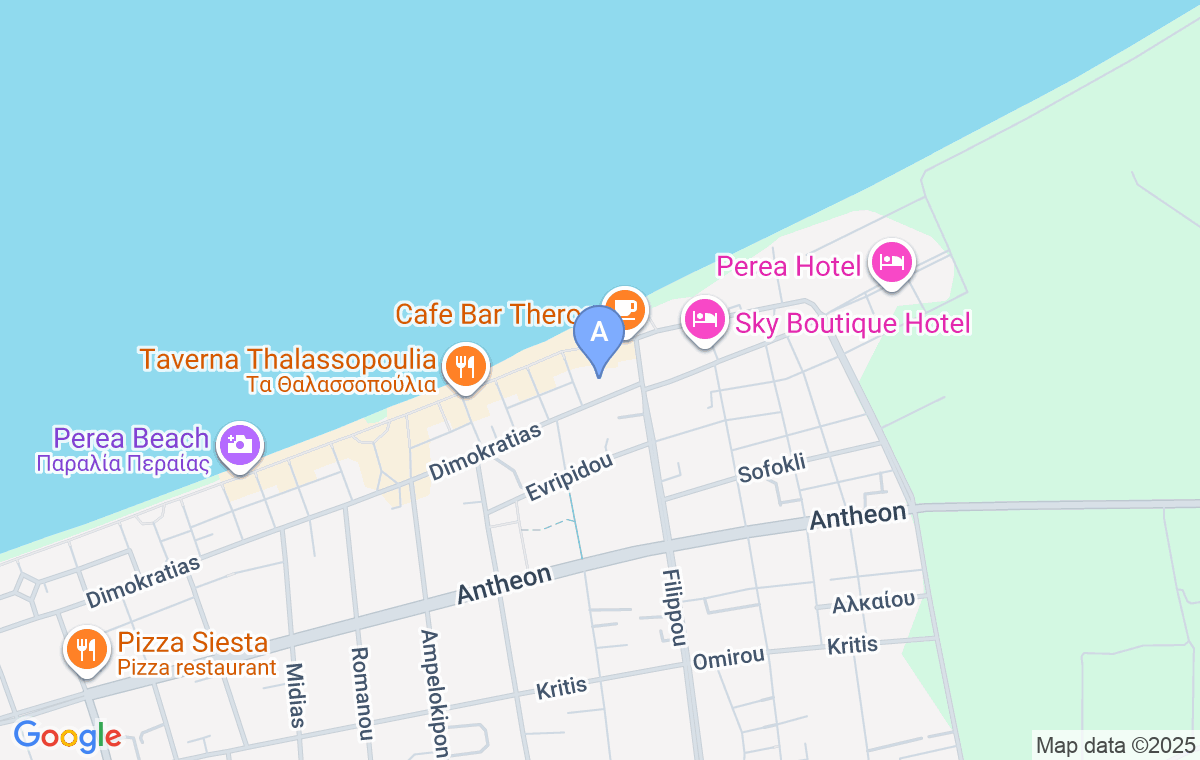 Apartman se nalazi pored najšireg dela plaže u Perei. U neposrednoj blizini se nalazi kafić Theros, ali i brojni drugi restorani duž plaže. Najbliži market i apoteka su u neposrednoj blizini apartmana, kao i veliki park za decu, pekare i poslastičarnice. Do centra mesta je potrebno 5 minuta hoda.