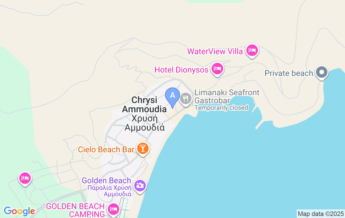 K. Villa se nalazi u mestu Golden Beach i od plaže je udaljena nekih 30m. U pitanju je mezoneta, to jest apartman sa dve zasebne spavaće sobe, koji može da ugosti do sedam osoba i proteže se na dva nivoa (suteren i prizemlje). Gostima su na raspolaganju TV, klima uređaj, WiFi, sigurnosni sef, veš mašina, fen za kosu, potpuno opremljena kuhinja sa rernom, velikim frižiderom, kuvalom, tosterom i mikrotalasnom. Gosti se sami brinu o higijeni tokom boravka. Idealan je izbor za veće porodice ili grupu prijatelja.