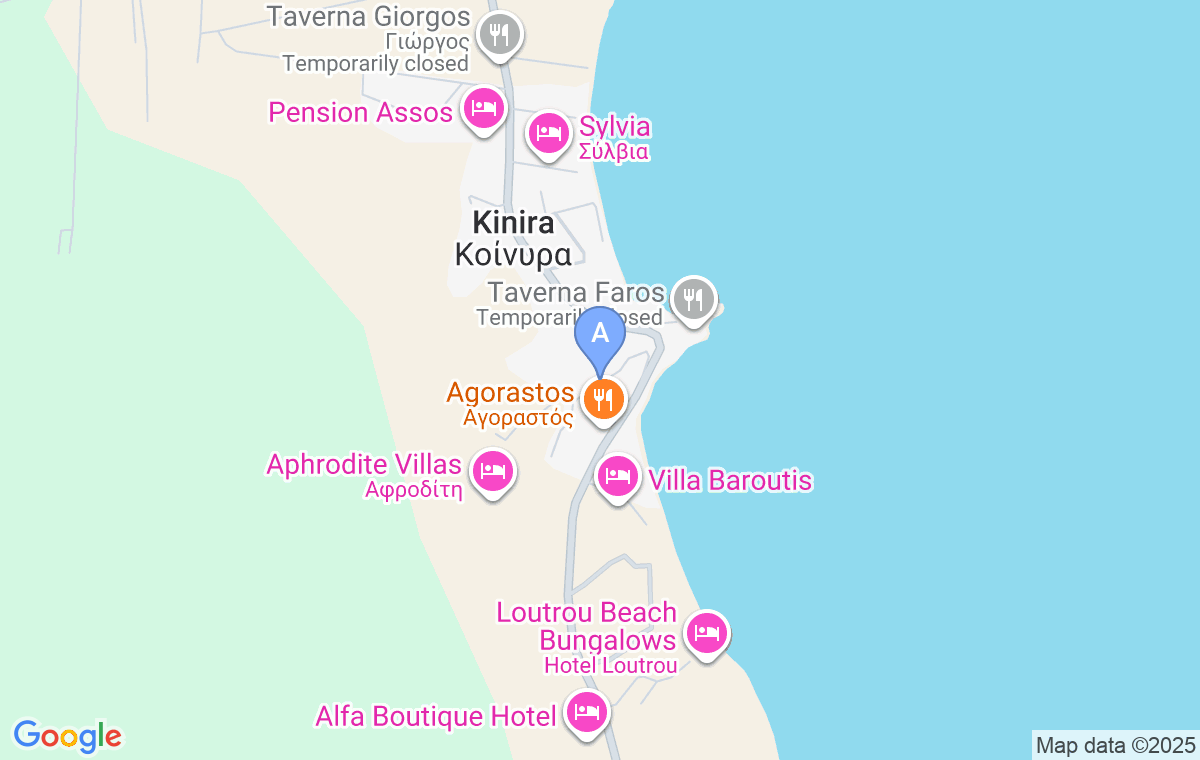 Nalazi se u mestu Kinira, na oko 250m od plaže. Prva prodavnica se nalazi na 200m od smeštaja.