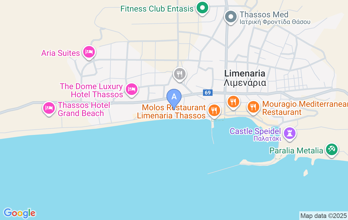 Gradska plaža u Limenariji se nalazi na 40m od vile i ima kafiće sa suncobranima i ležaljkama koji se mogu dobiti uz kupljeno piće ili kafu. Na nekoliko koraka od kuće počinje šetalište na kome je veliki broj restorana, taverni, picerija i prodavnica.