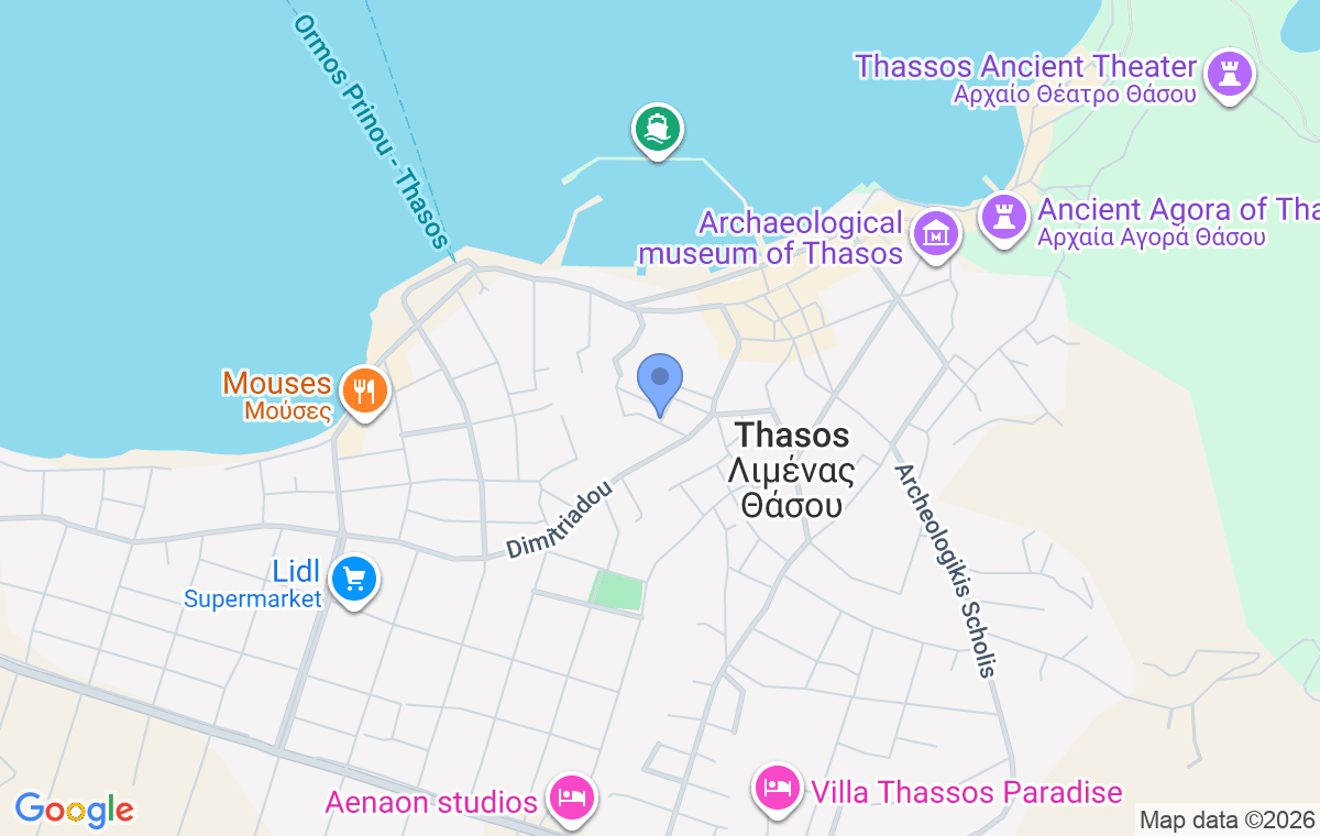 Smeštaj se nalazi na 1km udaljenosti od gradske plaže, kao i od plaže Vournelis na drugom kraju grada.