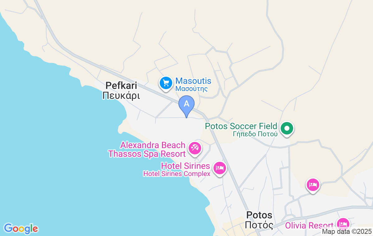 Kada dolazite iz pravca Limenarije, ne skrećete kod prvog, glavnog skretanja za Pefkari već kod drugog koje se nalazi tačno ispred hotela Alexandra Beach. Kada skrenete desno, vozite se još oko 100 metara i sa vaše leve strane videćete apartmane.