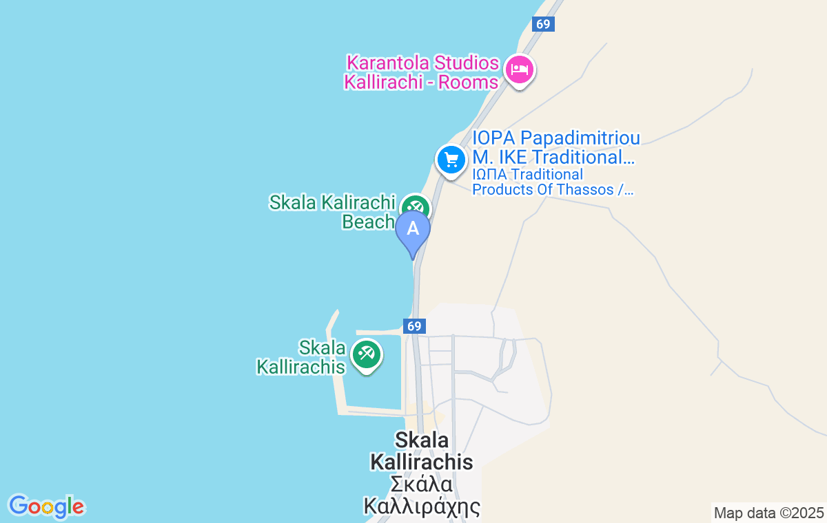 Ovaj smeštaj se nalazi u Skali Kalirachi, na par koraka od mora, kao i od gradske plaže. Plaža ispred smeštaja je kamenita/šljunkovita. Prva pekara i prodavnica se nalaze na oko 500m od smeštaja.