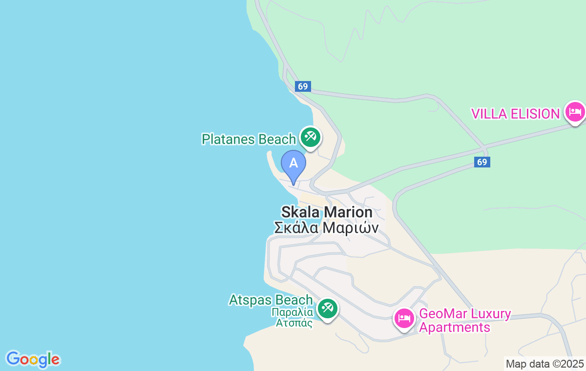 Mares Seaside Home u ponudi ima jedan apartman sa dve spavaće sobe i prelepim pogledom na more i plažu Sunset, u čijoj se blizini nalazi. Centar malog ali jako popularnog sela Skala Maries je udaljen svega 100m od vile, pa gosti lako mogu doći do svih sadržavaj koje ovo mesto nudi.