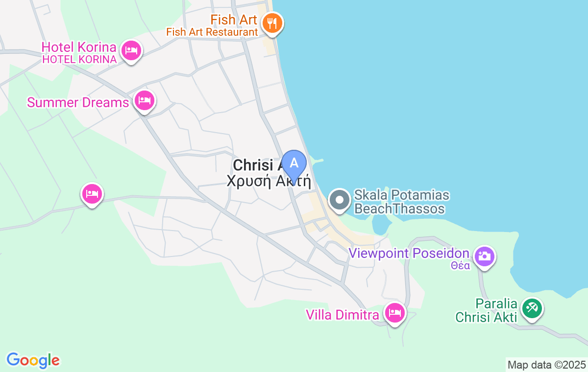 Ovaj objekat se nalazi u Skali Potamiji, na 150m od plaže. Prvi market (kao i centar mesta) se nalazi na 200m a prekoputa smeštaja postoji i mesara.