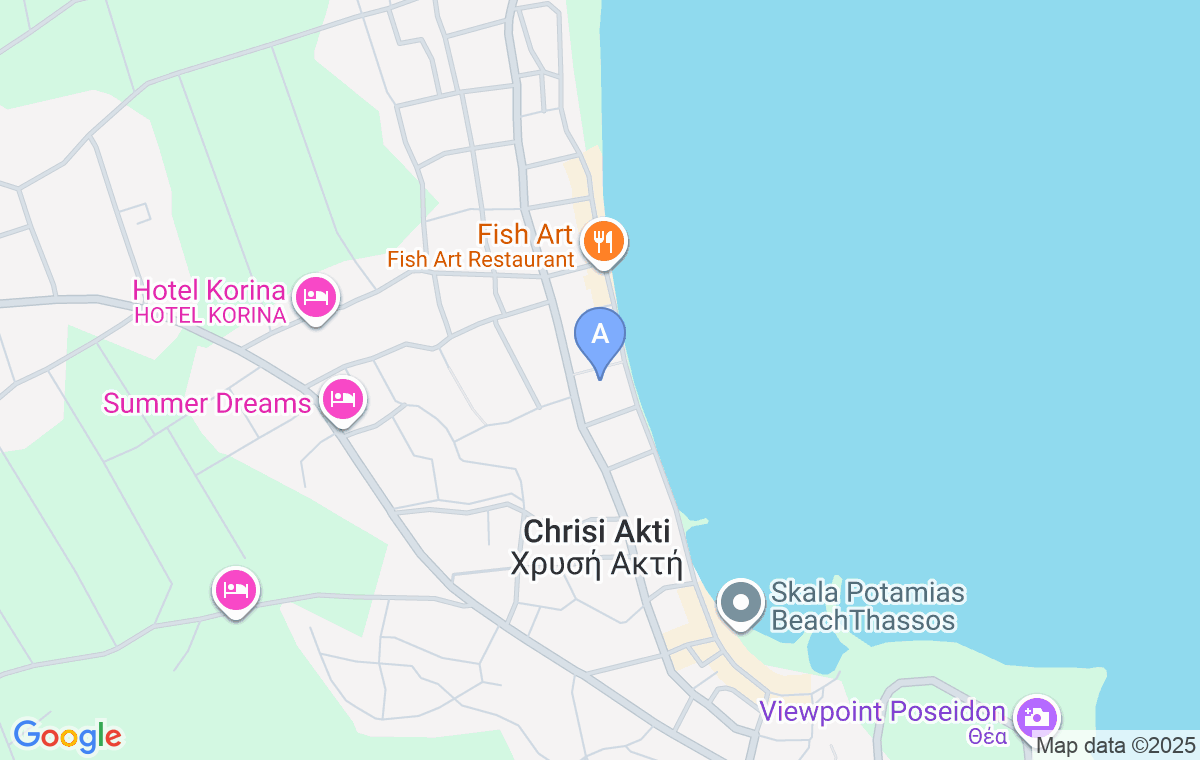 Smeštaj se nalazi u Skali Potamiji, na par koraka od dela gradske plaže koja je kamenita, ali nakon 200m počinje peščani deo. Centar Skale Potamije se nalazi na 700m od objekta.
