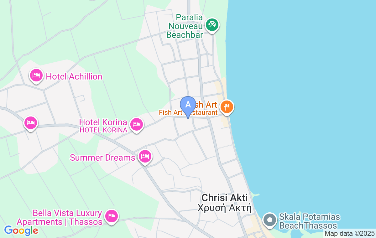Smeštaj se nalazi u Skali Potamiji, 220m od gradske plaže. Najbliža prodavnica je Albatros i udaljena 250m od smeštaja, a veći supermarket Carrefour gde možete pronaći hleb i pekarske proizvode udaljen je 600m, dok je centar na 700m udaljenosti.