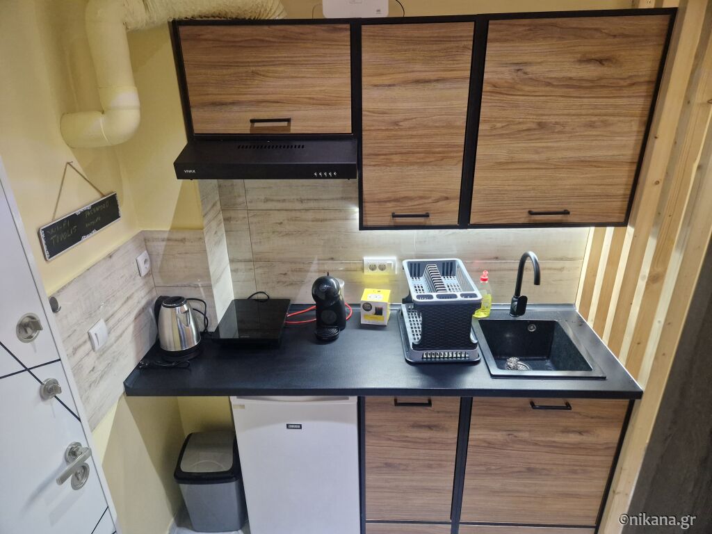 Kuhinje su opremljene kuvalom, aparatom za kafu, kao i malim frižiderom sa komorom za zamrzavanje ili velikim frižiderom u jednom apartmanu i sa dve ringle.
