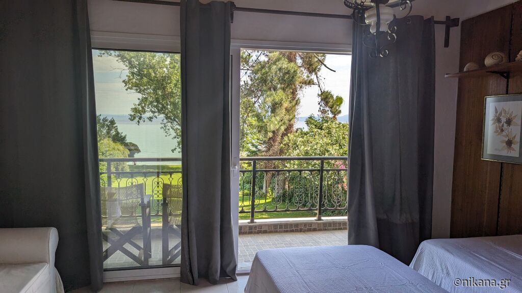 Kuća nalazi u prvom redu do mora u letovalištu Hanioti, na istočnoj obali poluostrva Kasandra. Gradskoj plaži koja je peščana i organizovana se pristupa direktno iz dvorišta, dok je glavni trg sa velikim brojem prodavnica, pekara i restorana udaljen 850m.