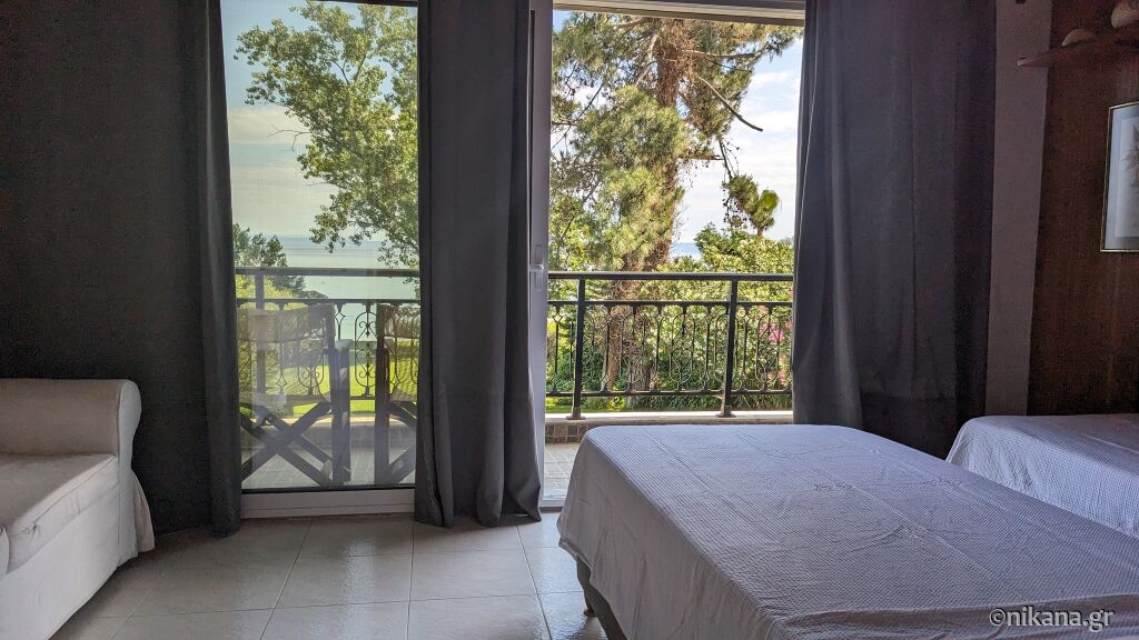 Dolazeći iz pravca Soluna, nakon što prođete supermarket Masoutis u Haniotiju, skrenućete levo u ulicu ka moru nakon 400m, pa nastavite pravo još 250m do poprečne ulice u kojoj se nalazi ovaj smeštaj odmah pored plažnog bara Achinos.