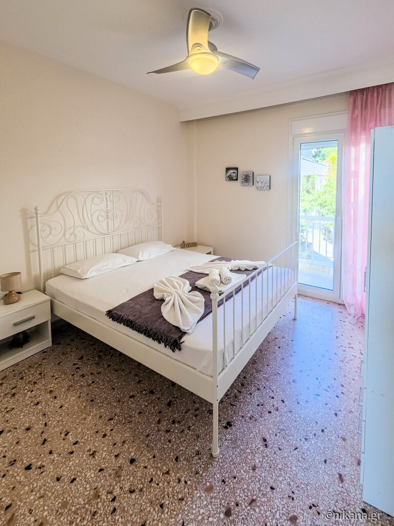 Apartman se sastoji od dve spavaće sobe, kuhinje i kupatila i predviđen je za boravak najviše četiri odrasle osobe. Apartman je smešten na prvom spratu stambene zgrade u lepoj ulici uz samu obalu i pruža direktan pogled na more i šetalište. U jednoj spavaćoj sobi nalazi se francuski ležaj, dok su u drugoj sobi dva ležaja za jednu osobu. Prostor je funkcionalno organizovan, sa dovoljno mesta za odlaganje stvari i boravak tokom dužeg letovanja. Veliki prozori obezbeđuju mnogo prirodnog svetla, a pogled na more iz soba i sa balkona dodatno naglašava osećaj opuštanja.