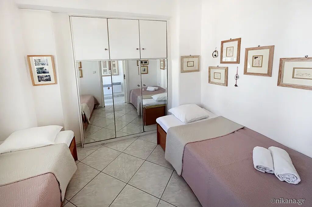 Apartman na drugom spratu objekta prilagođen je udobnom boravku najviše četiri odrasle osobe. Unutrašnjost obuhvata dnevnu sobu sa kuhinjom, spavaću sobu i kupatilo. Spavaća soba opremljena je sa dva ležaja za po jednu osobu, dok se u dnevnoj sobi nalazi sofa za dve osobe. Pažljivo osmišljeno uređenje i funkcionalan raspored čine ovaj apartman praktičnim i prijatnim mestom za boravak u mediteranskom ambijentu, bilo da se radi o kraćem odmoru ili dužem letovanju.