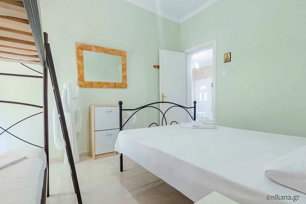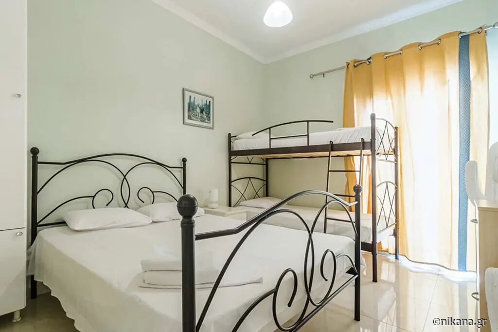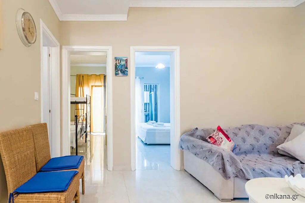 Apartman se nalazi u prizemlju i može da ugosti najviše šest odraslih osoba i dvoje dece. Sastoji se od dnevne sobe sa kuhinjom, dve spavaće sobe i dva kupatila. U jednoj spavaćoj sobi je francuski ležaj i kupatilo, u drugoj spavaćoj sobi su francuski ležaj i kreveti na sprat, dok se u sklopu dnevne sobe nalazi sofa za dve osobe.