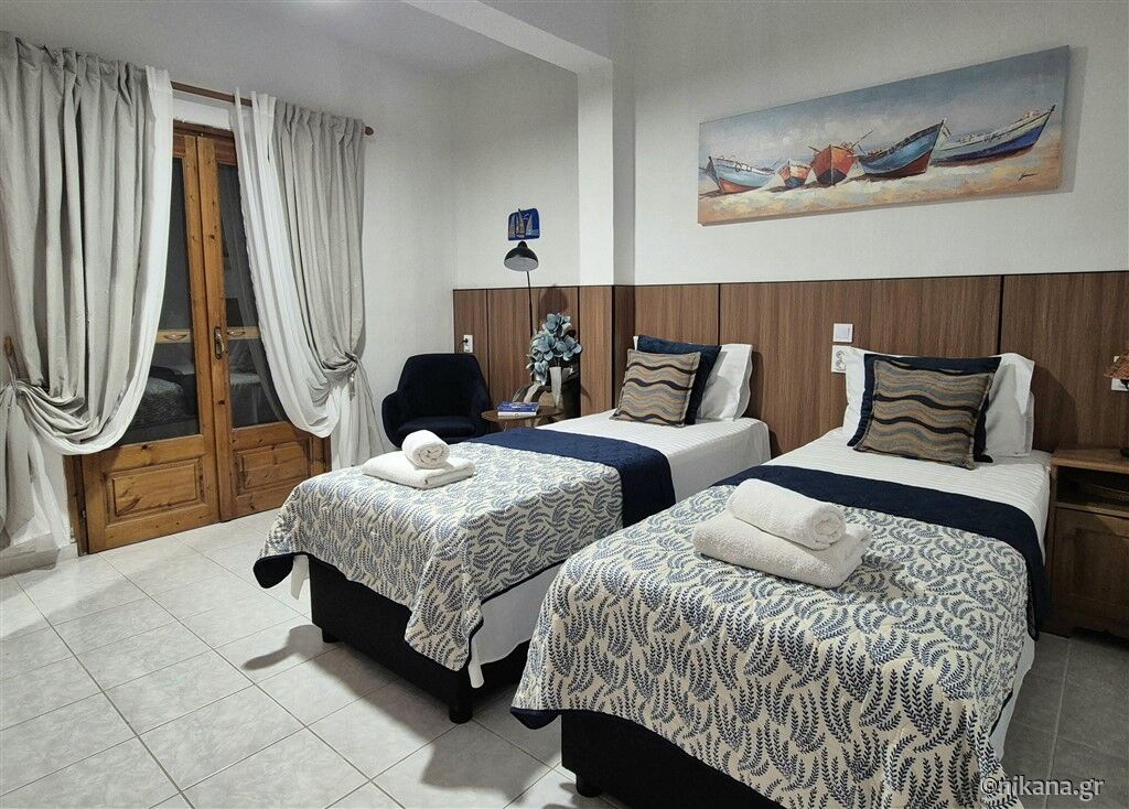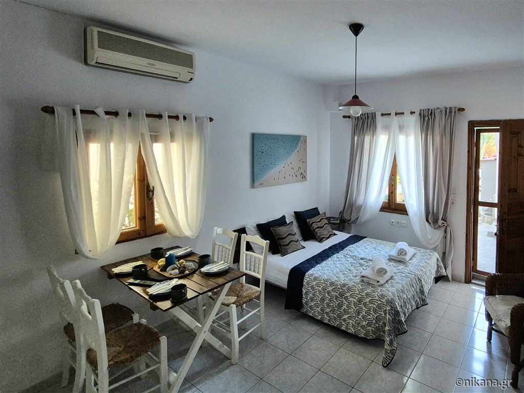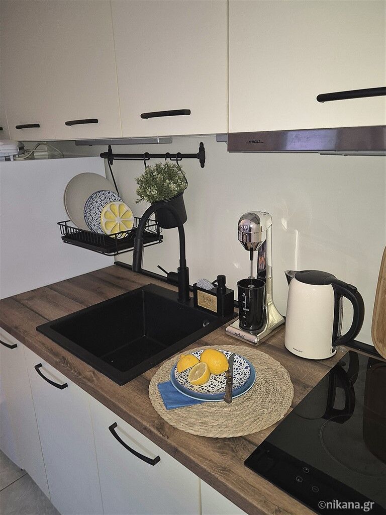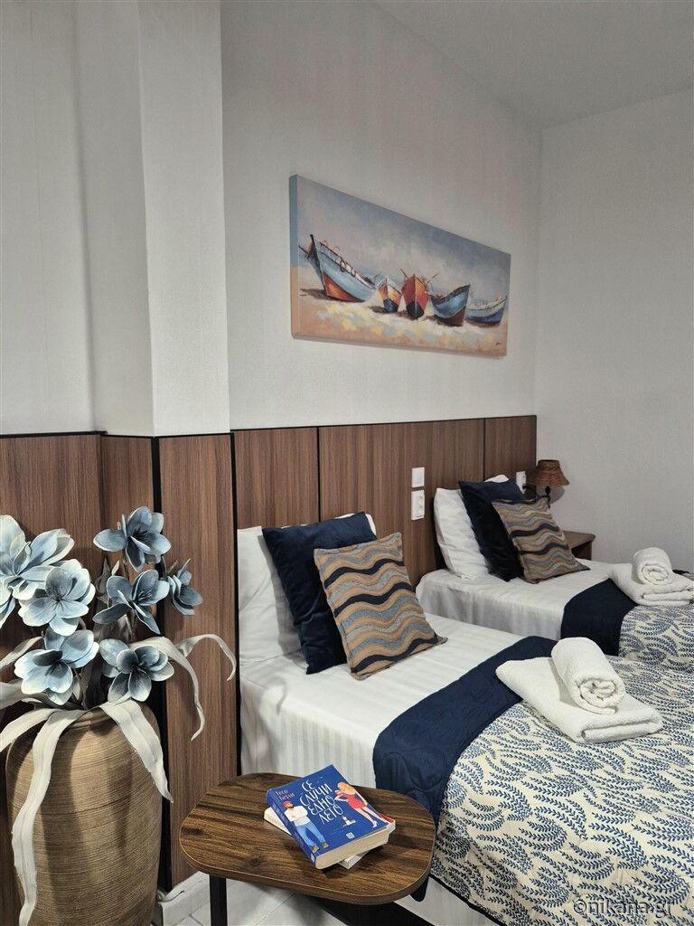 Mamma Mia Apartment nalazi se u Haniotiju, na oko 450 metara od plaže, i predstavlja odličan izbor za goste koji žele udoban boravak u samom centru mesta. Iako je smešten u živahnom delu letovališta, apartman je ušuškan u lepo uređeno dvorište sa baštom i obiljem prirodnog hlada, što obezbeđuje mir i privatnost. Smeštaj je pogodan kako za porodice, tako i za veća društva koja žele da borave zajedno i uživaju u zajedničkom odmoru. Gradsku plažu u Haniotiju odlikuje kombinacija peska i sitnog šljunka, uz blag i postepen ulazak u more, što je čini naročito pogodnom za porodice sa decom. Nosilac je prestižne Plave zastave, koja svedoči o visokom stepenu čistoće, urednosti i kvalitetnom održavanju same plaže i njenog okruženja. Kristalno čisto i bistro more pruža idealne uslove za sigurno kupanje i opuštanje. Hanioti nudi i brojne sadržaje za najmlađe, poput zatvorenih i otvorenih igraonica, kao i parka u hladu sa velikim brojem igračaka u pesku i drugih sadržaja za decu.