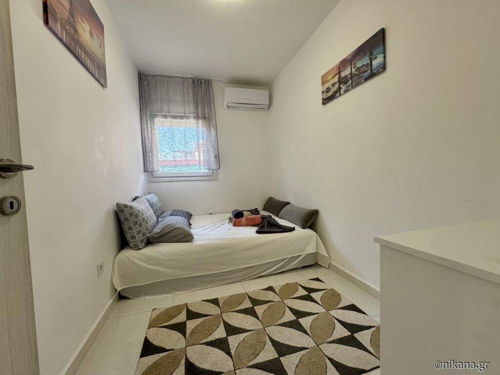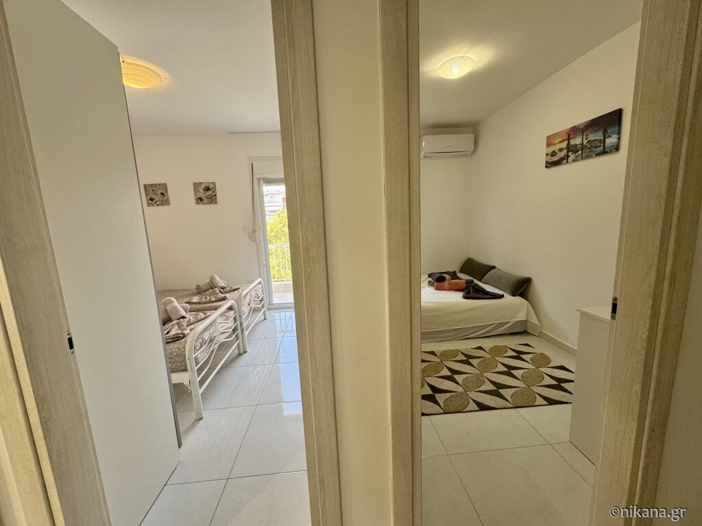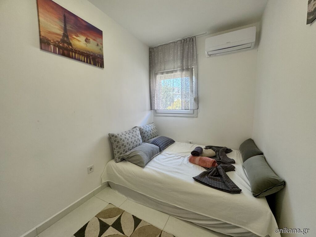 Apartman se nalazi na trećem spratu i može da ugosti četiri odrasle osobe i dvoje dece. Sastoji se od dnevne sobe sa opremljenom kuhinjom, dve spavaće sobe i kupatila. U jednoj spavaćoj sobi su dva spojena ležaja za po jednu osobu, dok se u sklopu dnevne sobe i u drugoj spavaćoj sobi nalazi po jedna sofa za dve osobe.