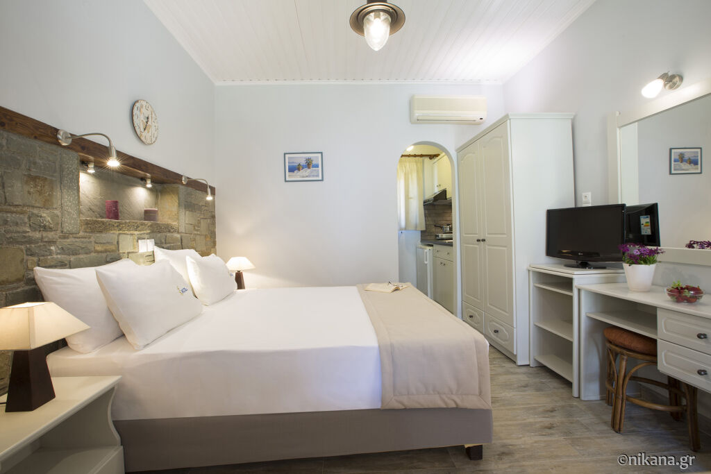 Studio može da ugosti najviše dve odrasle osobe i sastoji se od kupatila i kuhinje u okviru koje se nalazi francuski ležaj.
