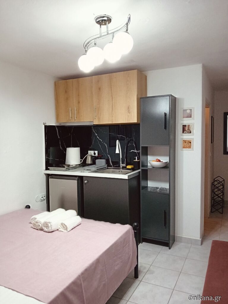 Studio raspolaže klima uređajem koji omogućava ugodan boravak i tokom najtoplijih letnjih dana, kao i Smart TV-om i Wi-Fi internetom, pružajući gostima mogućnost opuštanja i stalne povezanosti. Čajna kuhinja osmišljena je za praktično svakodnevno korišćenje i namenjena je pripremi jednostavnih obroka, uz ploču sa dve ringle, džezvu za kafu i frižider sa komorom za zamrzavanje, tako da su namirnice i rashlađena pića uvek na dohvat ruke.