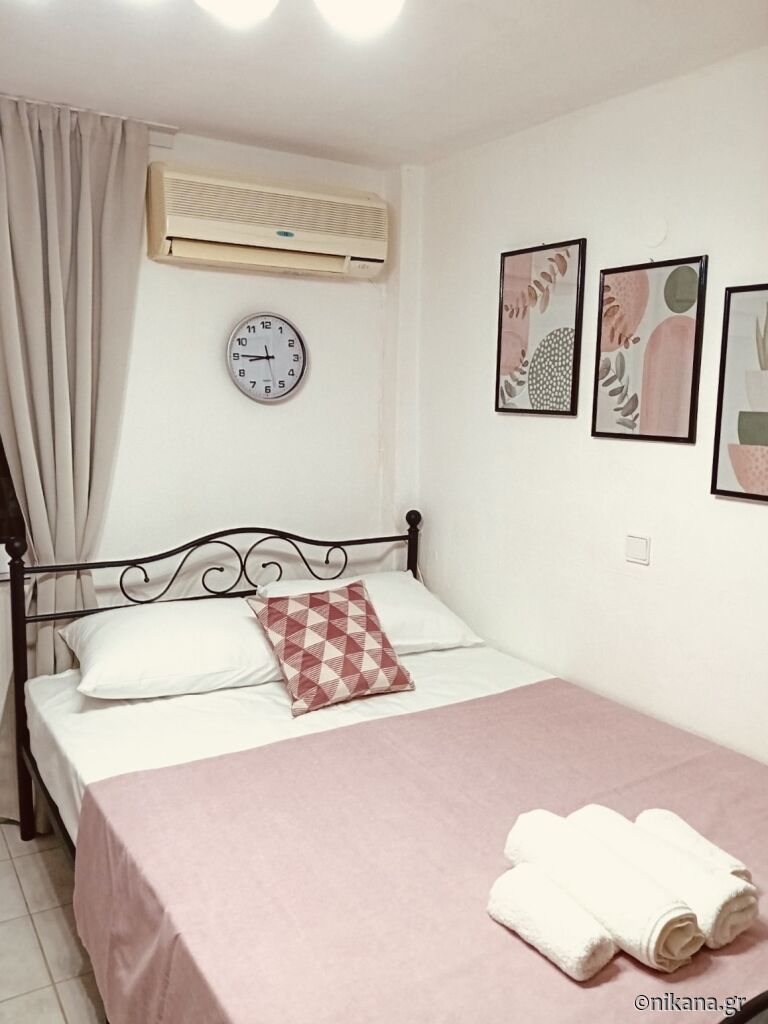 Studio smešten na prvom spratu objekta osmišljen je kao praktičan i prijatan prostor za boravak najviše dve odrasle osobe i dvoje dece. Raspored je funkcionalan, sa francuskim ležajem kao centralnim delom prostorije, dok dodatna sofa omogućava smeštaj još dve osobe, čineći prostor pogodnim za kraći ili duži borava.
