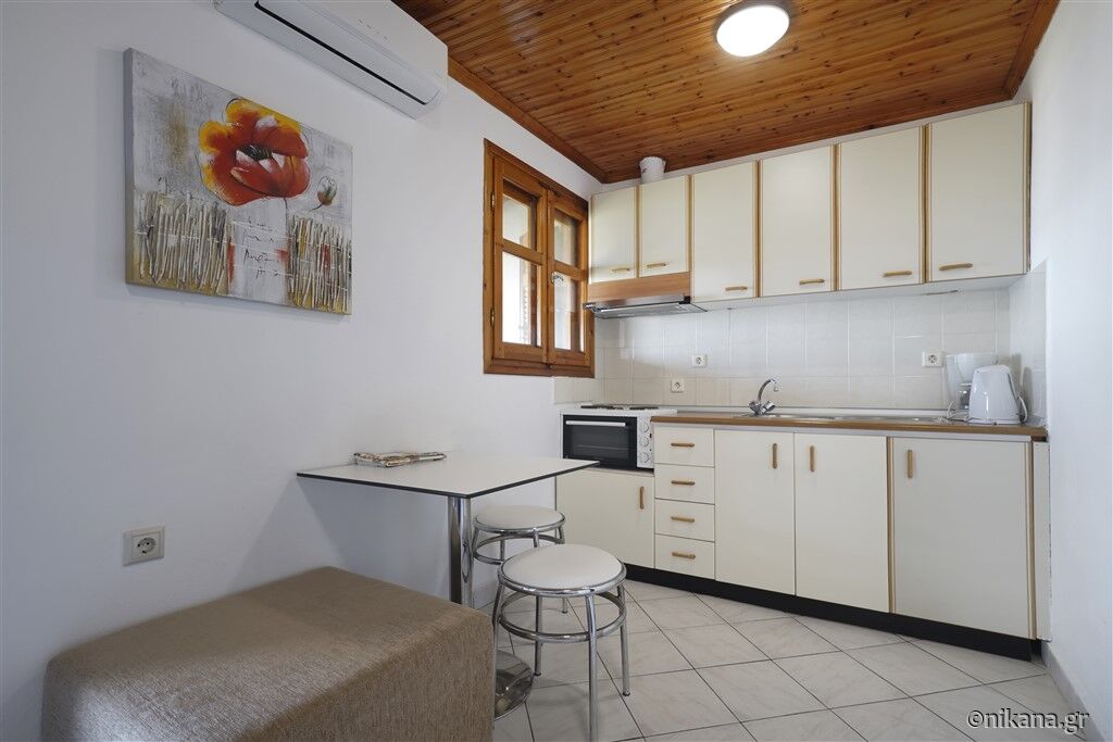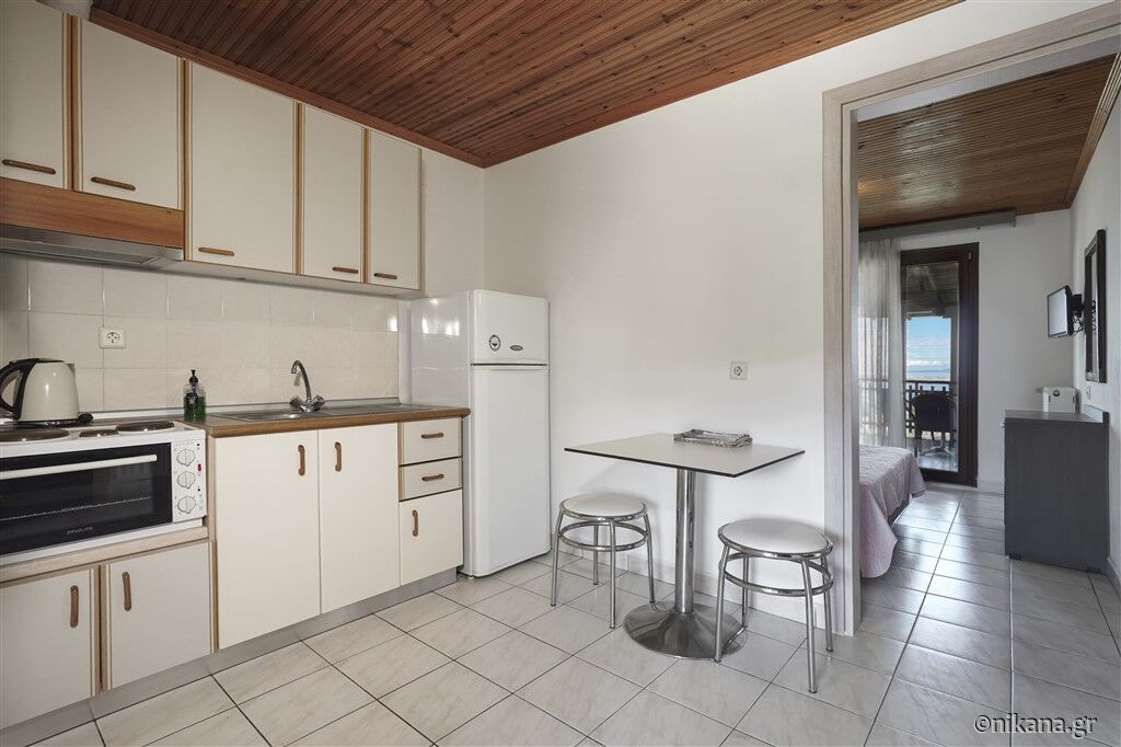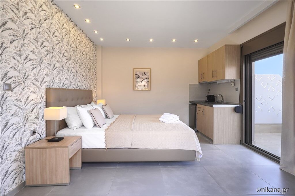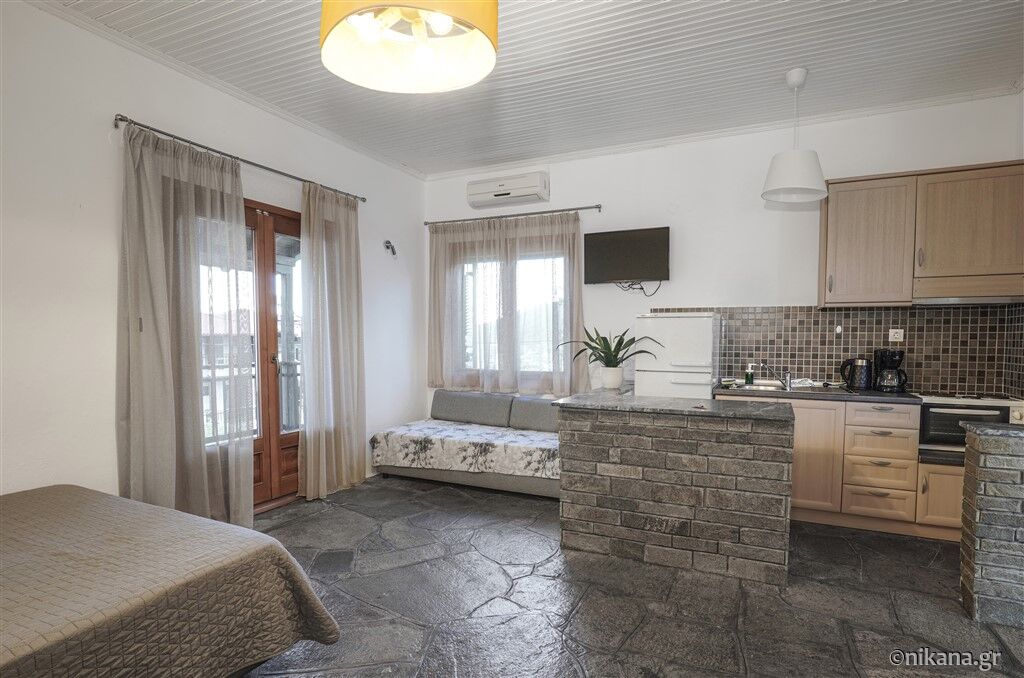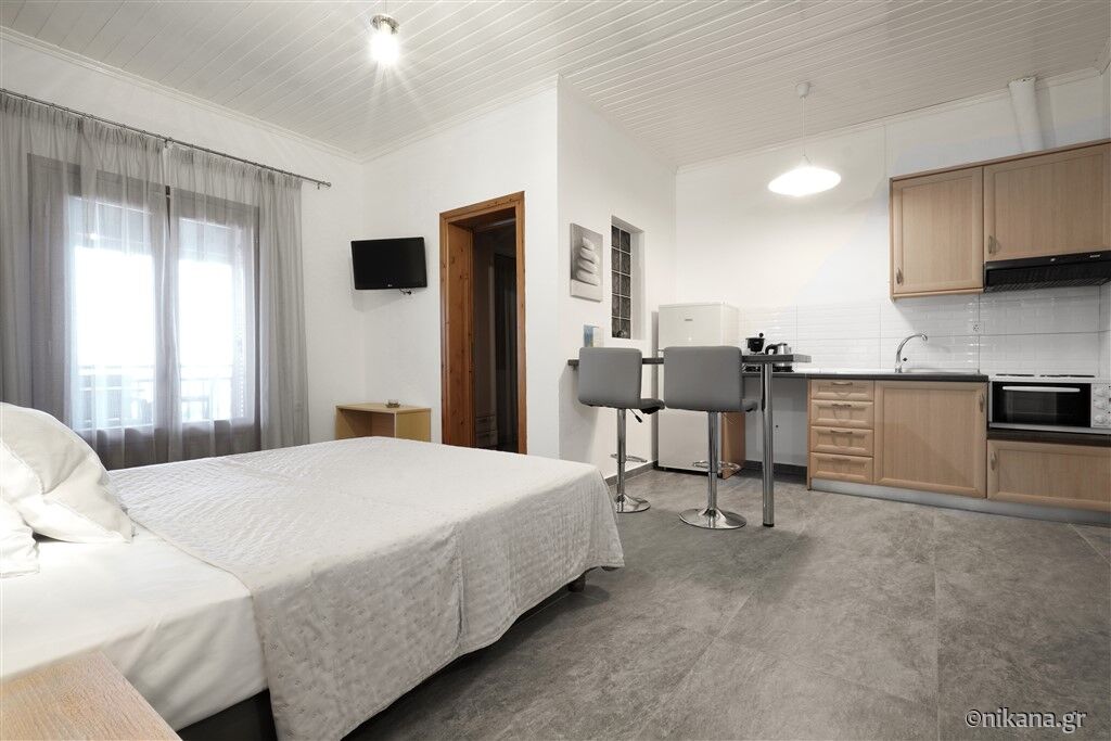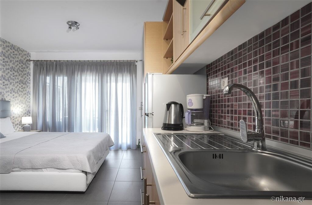 U ponudi su dvokrevetni i trokrevetni studiji, kao i trokrevetni i četvorokrevetni apartmani. Dvokrevetni studiji nalaze se na prvom ili drugom spratu. Mogu da ugoste najviše dve odrasle osobe i imaju po jedan francuski ležaj. Trokrevetni studio nalazi se u visokom prizemlju i može da ugosti najviše tri odrasle osobe. U svom sastavu ima francuski ležaj i ležaj za jednu osobu.