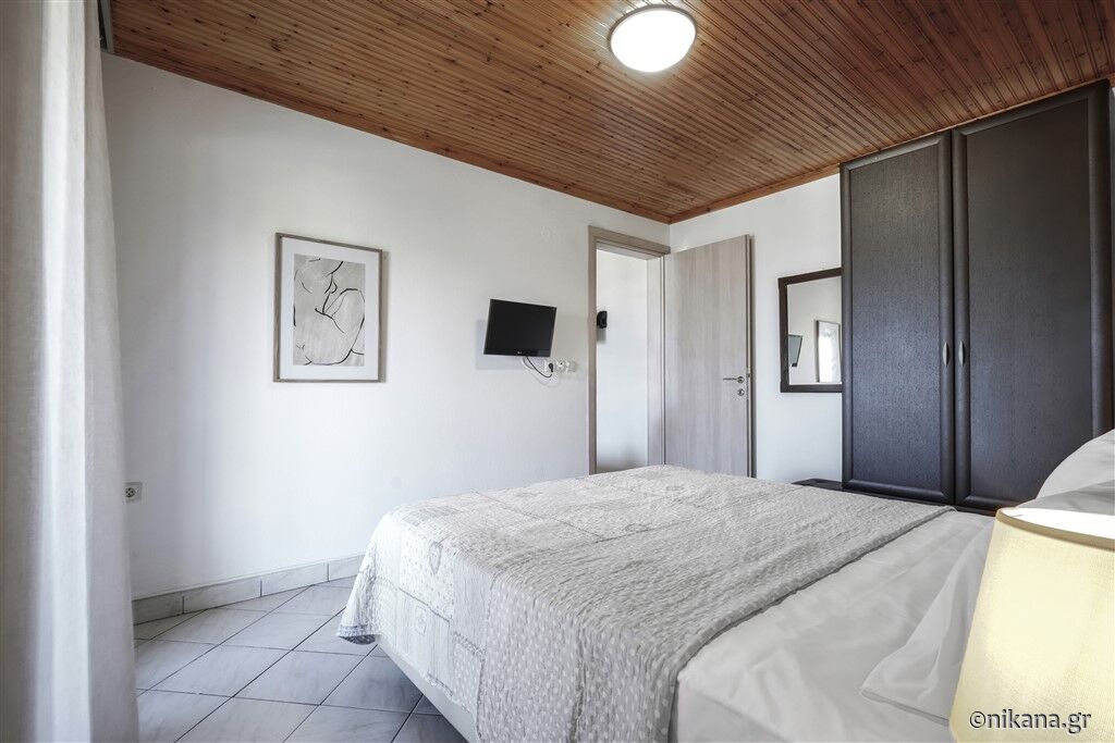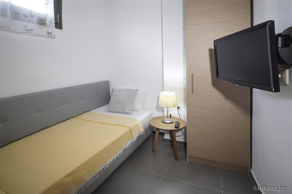 Trokrevetni apartman nalazi se u prizemlju i može da ugosti najviše dve odrasle osobe i jedno dete. U svom sastavu ima dnevnu sobu sa kuhinjom, spavaću sobu i kupatilo. U spavaćoj sobi nalazi se francuski ležaj, dok se u dnevnoj sobi nalazi sofa.