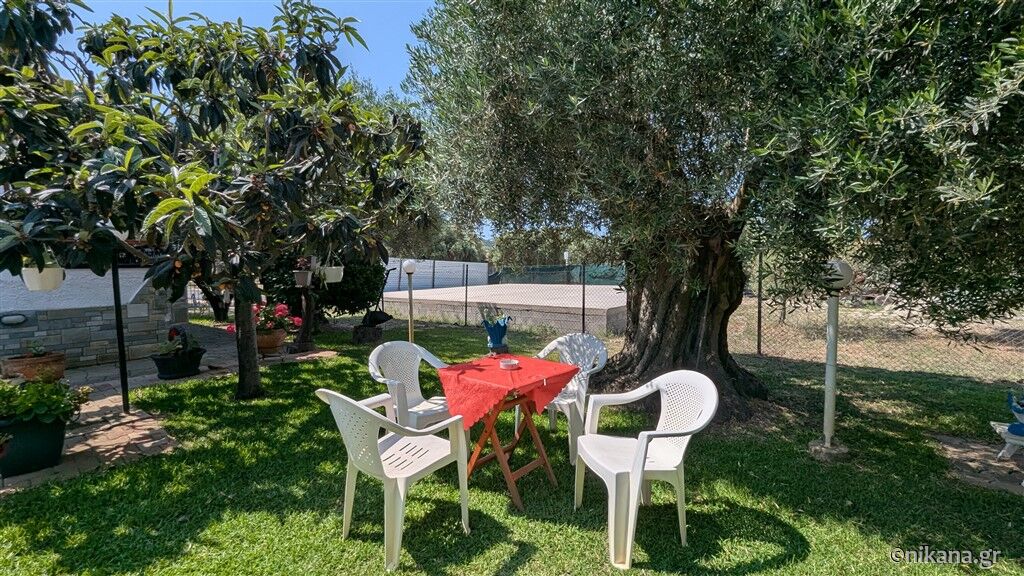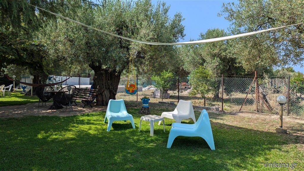 Efi’s House se nalazi na oko 300m od peščane plaže, u veoma mirnom delu Toronija, u prelepom dvorištu sa garniturama za sedenje, platnenim ljuljaškama za izležavanje, dosta prirodnog hlada i sadržaja za decu. Jedan od najpopularnijih smeštaja na Sitoniji gostima pruža lep i prijatan odmor, a odnos cene i kvaliteta je odličan.