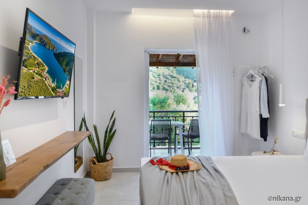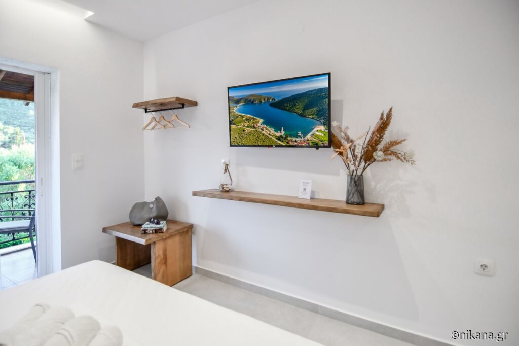 Smeštaj se nalazi se u Porto Kufou, ispod magistrale, na 300m od centra i gradske luke i 700m od plaže.