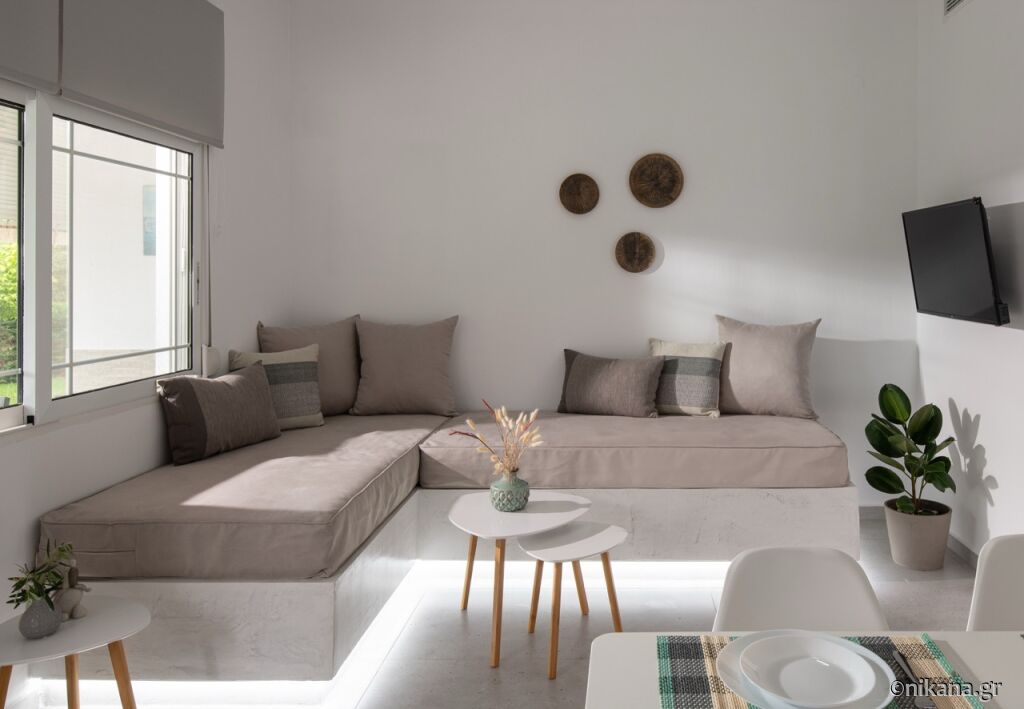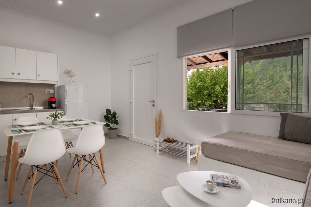 Do smeštaja ćete doći tako što ćete voziti magistralom. Kada ugledate benzinsku pumpu Cyclon sa svoje desne strane (ukoliko putujete iz pravca Neos Marmarasa), znaćete da ste došli i do smeštaja, jer se nalazi odmah iza pumpe.