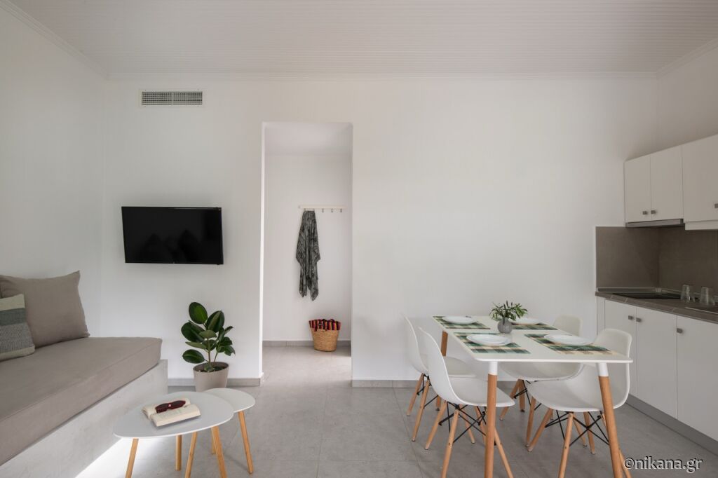 Studiji imaju kuhinju sa malim frižiderom sa komorom za zamrzavanje, rešoom sa dve ringle i neophodnim posuđem, TV, klima uređaj, internet i komarnike. U kupatilu je tuš bez zavese i kade, samo pločice. Zamena peškira i posteljine se vrši svakog četvrtog dana.