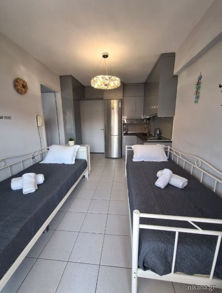 Trokrevetni studio ima kuhinju i kupatilo. Ima jedan francuski ležaj i jednu sofu za jedno dete, uzrasta maksimum do 13 godina. Četvorokrevetni apartmani imaju kuhinju sa dnevnom sobom, kupatilom i odvojenu spavaću sobu. U spavaćoj sobi imaju francuski ležaj, dok u okviru kuhinjskog prostora imaju sofu za dve osobe ili dva singl ležaja.