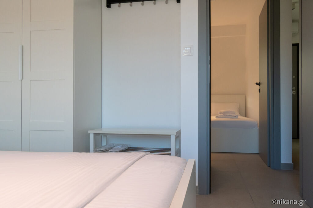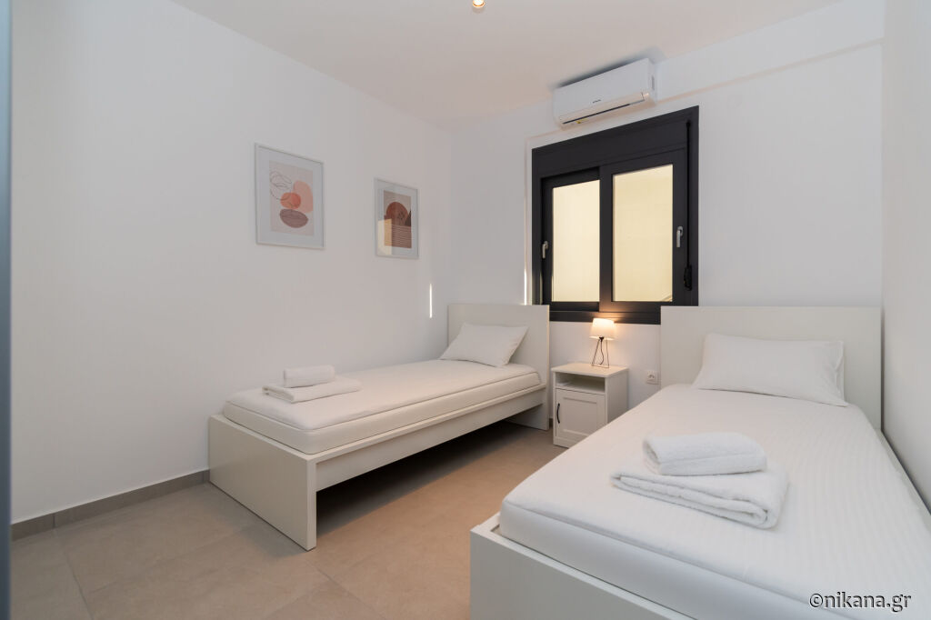 Ovaj apartman u prizemlju pogodan je za boravak do četiri odrasle osobe i jedno dete. Sastoji se od dnevne sobe, kuhinje, dve spavaće sobe i kupatila. Jedna spavaća soba opremljena je francuskim ležajem, u drugoj nalaze dva kreveta za jednu osobu, dok se u dnevnoj sobi nalazi sofa za jednu osobu.