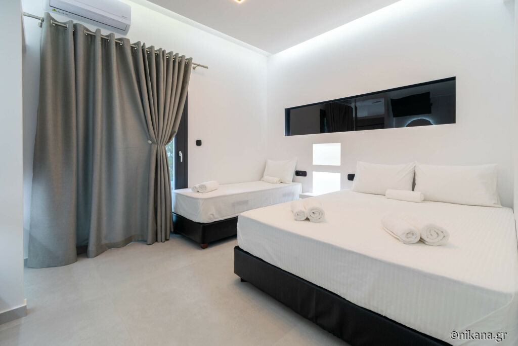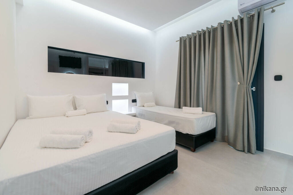 Apartman se nalazi na drugom spratu i može da ugosti osam odraslih osoba. Sastoji se od kuhinje, tri spavaće sobe, kupatila i toaleta. U dve spavaće sobe nalazi se francuski ležaj i ležaj za jednu osobu, dok se u trećoj spavaćoj sobi nalazi francuski ležaj.