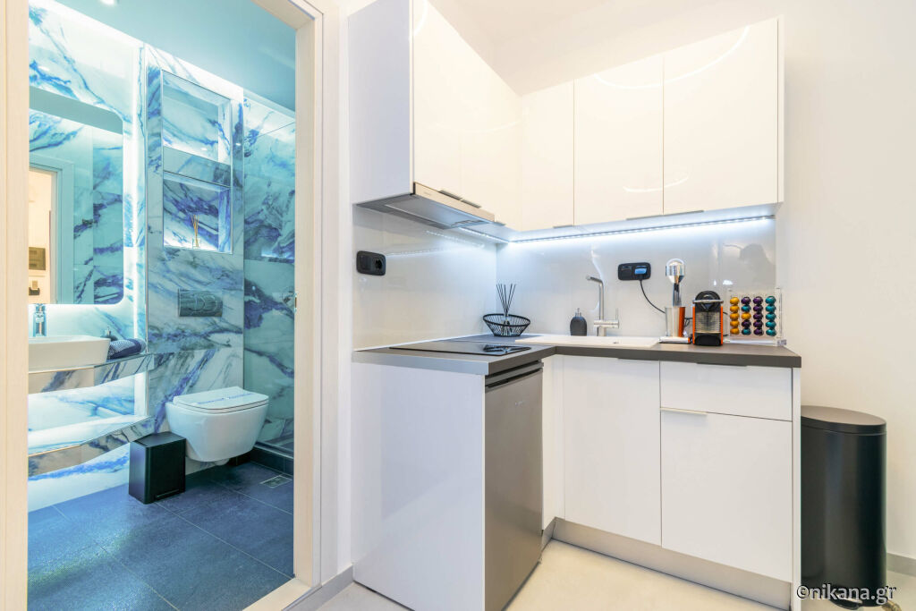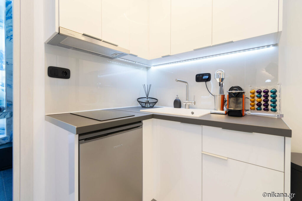 Studio je opremljen sa posebnom pažnjom kako bi gostima obezbedio udoban, praktičan i bezbrižan boravak. Klima uređaj, bežični internet i Smart TV sa dostupnim aplikacijama omogućavaju prijatnu atmosferu i zabavu u svakom trenutku dana. Funkcionalna čajna kuhinja prilagođena je svakodnevnim potrebama i omogućava jednostavnu pripremu lakih obroka, zahvaljujući ploči sa dve staklokeramičke grejne zone, frižideru sa komorom za zamrzavanje i tosteru za brze i praktične obroke. Uređaji za pripremu napitaka, poput kuvala za vodu, Nespresso aparata i mutilice za nes, omogućavaju gostima da u svakom trenutku pripreme kafu ili omiljeni topli napitak. Na raspolaganju su i fen za kosu, pegla i daska za peglanje, koji dodatno doprinose komforu i praktičnosti tokom boravka.