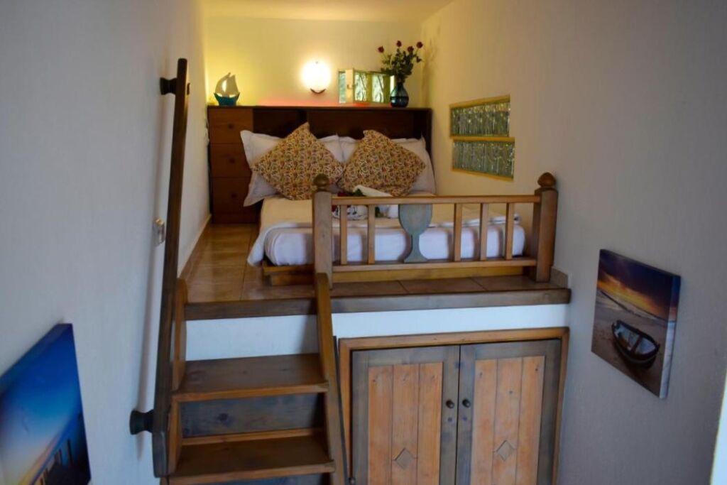 Ovaj apartman, koji je po svojoj strukturi mezoneta na tri nivoa, namenjen je za boravak najviše šest odraslih osoba i dvoje dece uzrasta do 16 godina, a unutrašnja organizacija prostora obuhvata dnevnu sobu spojenu sa kuhinjom i toalet u prizemlju, zasebnu spavaću sobu na prvom spratu i kupatilo, kao i prostor za spavanje na otvorenoj galeriji na drugom spratu do koje se dolazi unutrašnjim stepenicama. Raspored ležajeva obuhvata spavaću sobu sa jednim francuskim ležajem i krevetima na sprat, otvorenu galeriju sa još jednim francuskim ležajem, dok se u okviru dnevne sobe nalaze dve sofe za po jednu osobu. Ovakva podela po nivoima omogućava precizno definisan raspored spavanja i boravka za navedeni broj gostiju.