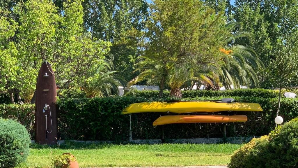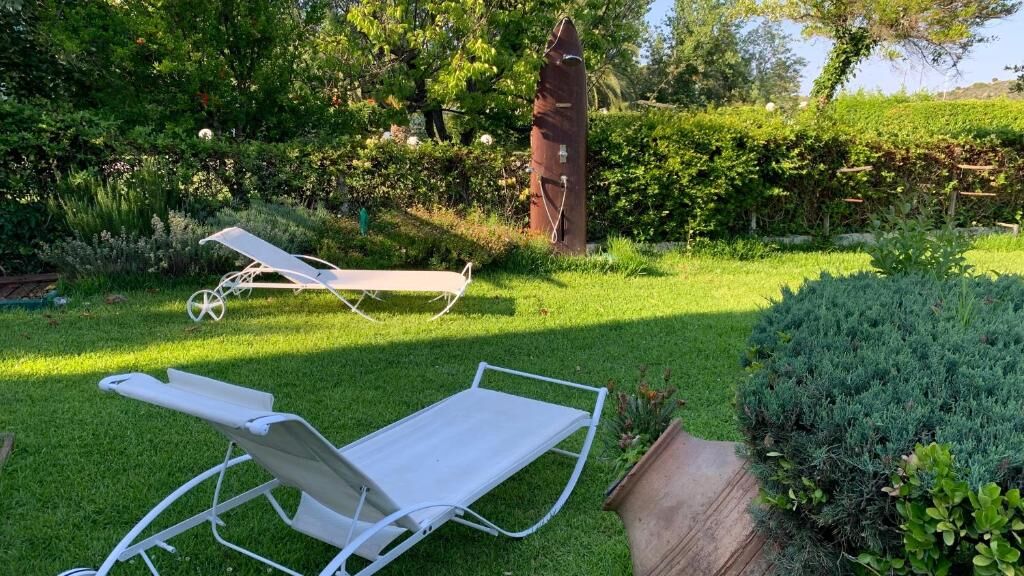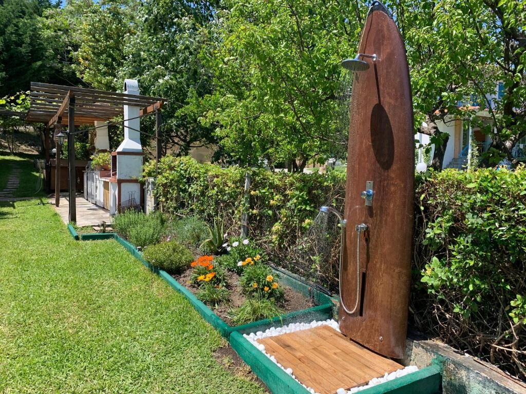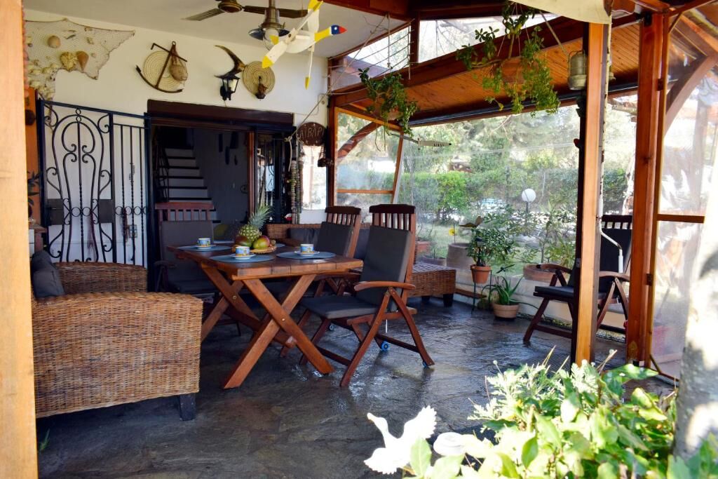 Spoljašnji prostor ovog smeštaja obuhvata verandu opremljenu garniturom za sedenje, kao i dva balkona sa kojih se pruža pogled na more, čime je obezbeđen prostor za boravak na otvorenom. Pored balkona, gostima je na raspolaganju uređeno dvorište sa travnatom površinom i ležaljkama, koje nudi dodatnu zonu za opuštanje unutar samog poseda. Dvorište je opremljeno i privatnim roštiljem za samostalnu pripremu obroka na otvorenom, kao i spoljašnjim tušem koji doprinosi funkcionalnosti prostora nakon povratka sa obale.