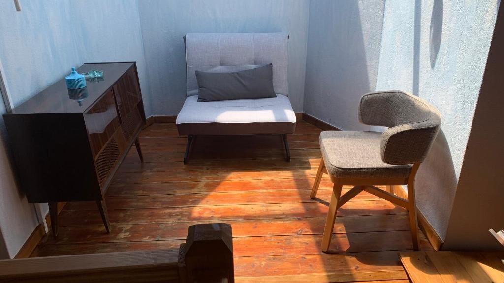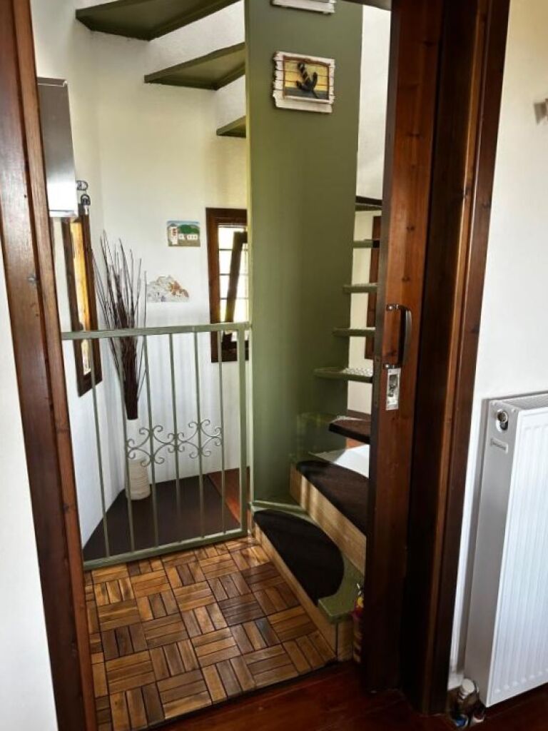Apartman je organizovan kao mezoneta na tri nivoa i namenjen je boravku najviše osam odraslih osoba. U prizemlju se nalazi dnevna soba povezana sa kuhinjom, koja predstavlja centralni prostor za zajednički boravak. Na prvom spratu smešteni su zasebna spavaća soba i kupatilo, dok je đakuzi postavljen u odvojenom delu, pružajući dodatnu pogodnost za relaksaciju. Unutrašnje stepenice vode do potkrovlja u kojem se nalazi otvorena galerija, čime je ostvarena jasna i funkcionalna podela između zona za odmor i spavanje. Raspored ležajeva prilagođen je kapacitetu apartmana: spavaća soba na prvom spratu opremljena je francuskim ležajem i foteljom na razvlačenje, dok se na galeriji nalaze još jedan francuski ležaj i jedna fotelja na razvlačenje. U dnevnoj sobi u prizemlju nalazi se sofa namenjena za dve osobe. Ovakva organizacija prostora omogućava komforan boravak većoj grupi gostiju, uz jasno definisane celine i dovoljno privatnosti na svakom nivou.