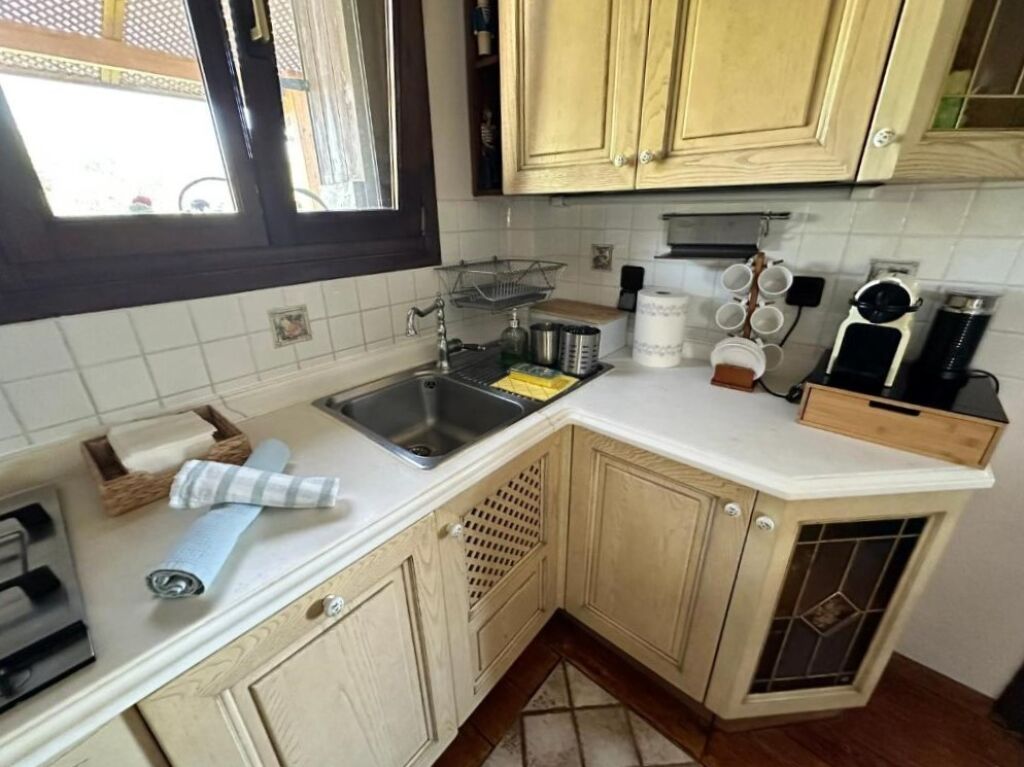 Unutrašnjost je opremljena savremenim uređajima koji omogućavaju visok stepen funkcionalnosti i udobnosti tokom boravka, pa temperaturu u svim prostorijama regulišu dva klima uređaja uz dodatak plafonskih ventilatora, dok su za svakodnevne potrebe gostima na raspolaganju besplatan bežični internet, smart televizor, sigurnosni sef, fen za kosu i mašina za pranje veša. Kuhinjski deo je u potpunosti prilagođen samostalnoj pripremi obroka i sadrži šporet na gas sa dve ringle i velikom rernom, uz dodatnu ploču sa dve staklokeramičke grejne zone, a uz veliki frižider sa zamrzivačem proces održavanja higijene posuđa i zagrevanja hrane znatno olakšavaju mašina za pranje sudova i mikrotalasna rerna. Dodatni komfor pružaju mali kućni aparati poput aparata za nespreso kafu, kuvala za vodu, tostera i mutilice za nes kafu, što gostima omogućava brzu pripremu toplih napitaka i doručka u okviru samog smeštaja.