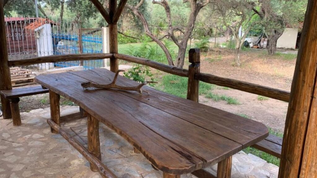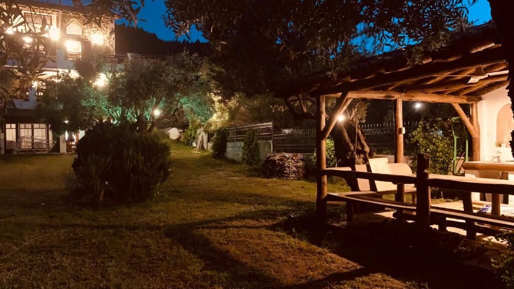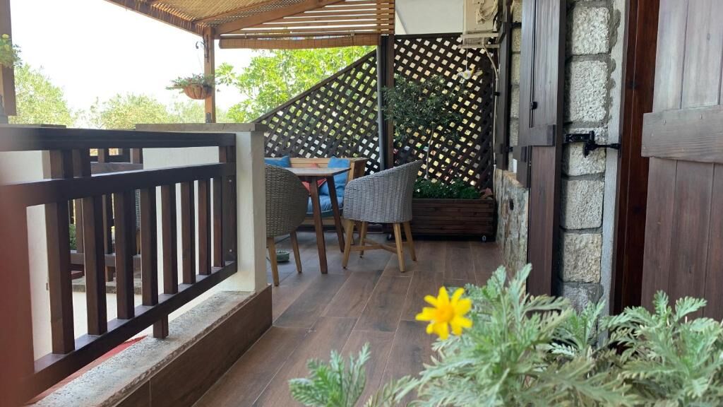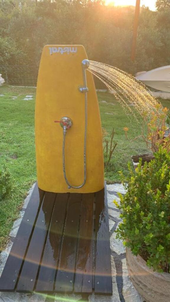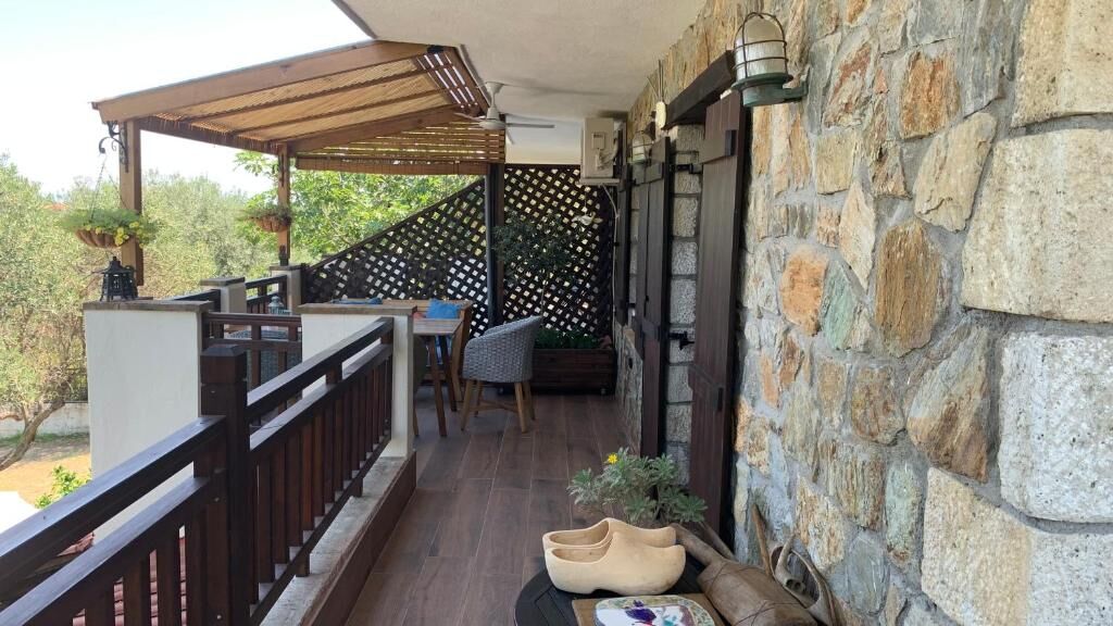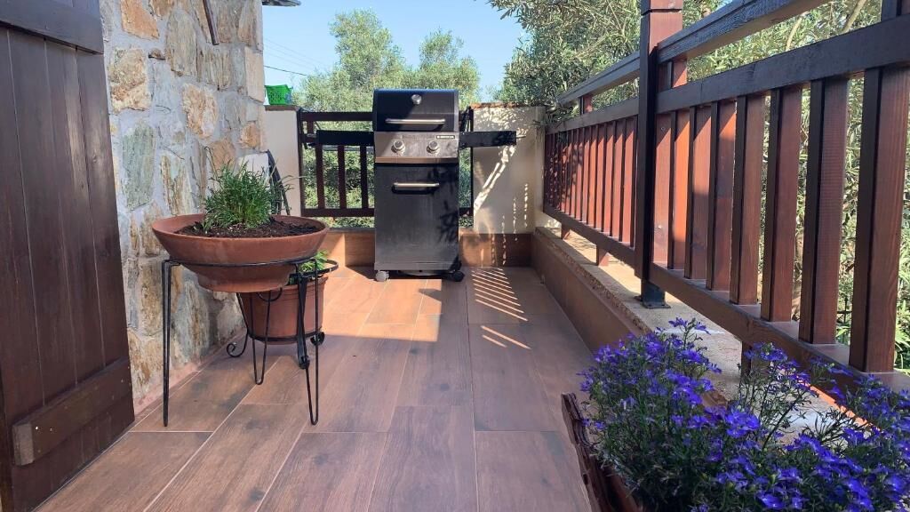 Spoljašnji prostor obuhvata verandu i dva balkona opremljena garniturama za sedenje, od kojih je jedan pozicioniran sa prednje, a drugi sa zadnje strane objekta sa koje se pruža pogled na more. Gostima je na raspolaganju uređeno dvorište sa travnatom površinom i ležaljkama, koje nudi dodatnu zonu za opuštanje unutar samog poseda u okviru letnjikovca. Dvorište je opremljeno i privatnim roštiljem za samostalnu pripremu obroka na otvorenom, kao i spoljašnjim tušem koji doprinosi funkcionalnosti prostora nakon povratka sa obale, čime je zaokružen kompletan ugođaj boravka na otvorenom.