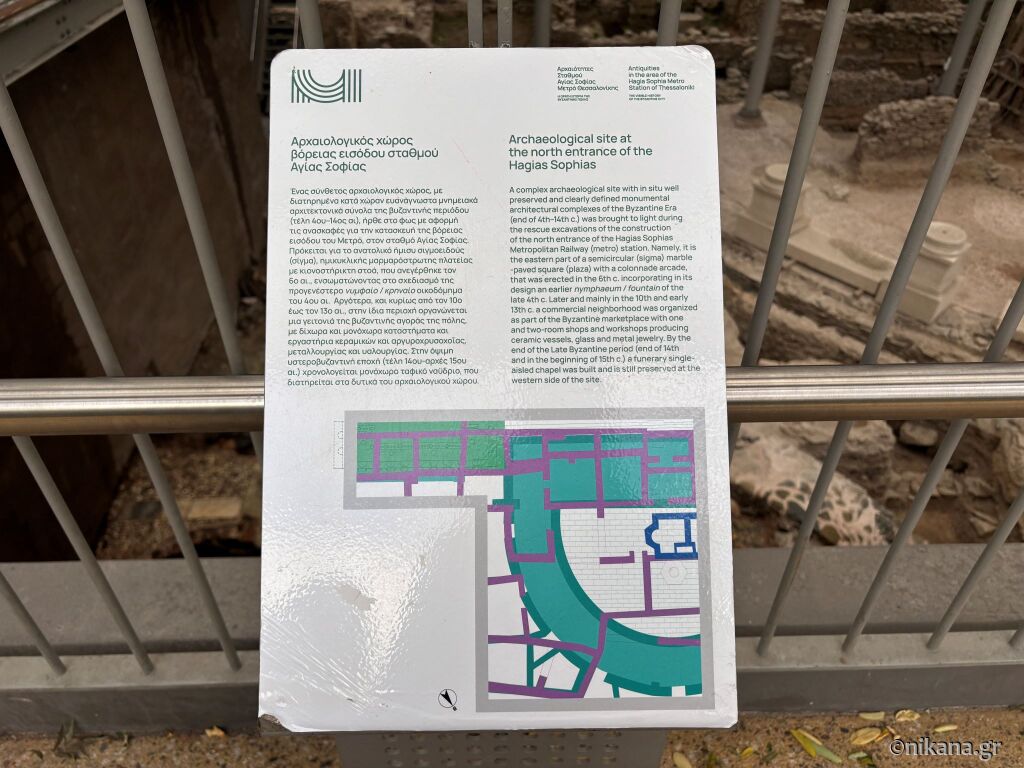 U severnom delu stanice Agias Sofias, iskopan je monumentalni kompleks iz kasnog antičkog perioda, sa kraja 6. i početka 7. veka. Reč je o deonici jedne od magistralnih putnih arterija, koja je otkrivena na dužini od najmanje 72,80 metara. Ulica popločana mermernim pločama i oivičena mermernim ivičnjacima, neposredno pre spoja sa vertikalnom ulicom u visini današnje ulice Agias Sofias, širi se, formirajući popločani trg sa česmom. Monumentalnu formu ulice upotpunjuje kolonada, sačinjena od sedam stubnih osnova iz 4. i 6. veka, u južnom delu glavne ulice i karakteriše je kao Via Colonnata.