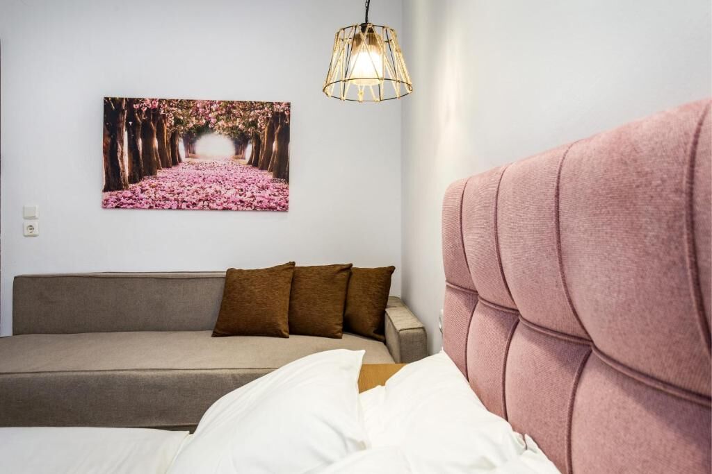 Studiji u centralnom objektu su površine 25m2 i nalaze se u prizemlju ili na prvom spratu. Svi imaju kuhinju koja se nalazi u malom hodniku na ulazu u studio, francuski ležaj i jedan singl ležaj. Po potrebi u studio se moze ubaciti pomoćni ležaj. Pomoćni ležaj je sa standardnim dušekom, pa je krevet udoban kao i običan ležaj. Terase su prostrane i sve gledaju prema dvorištu.