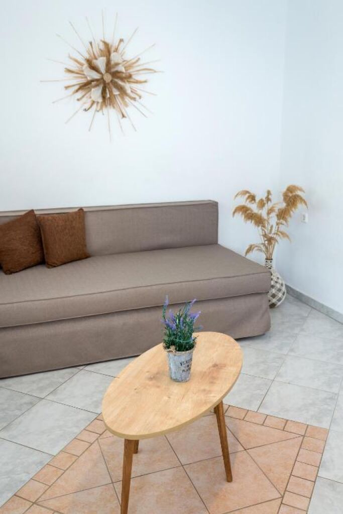 Jedan apartman se nalazi u istom objektu na prvom spratu. Apartman ima spavaću sobu sa francuskim ležajem, dnevni boravak sa kuhinjom i kaučem na rasklapanje gde mogu spavati dve osobe. Po potrebi, može se ubaciti i peti pomoćni ležaj. Površina apartmana je oko 30m2 i terasa ima pogled ka dvorištu.